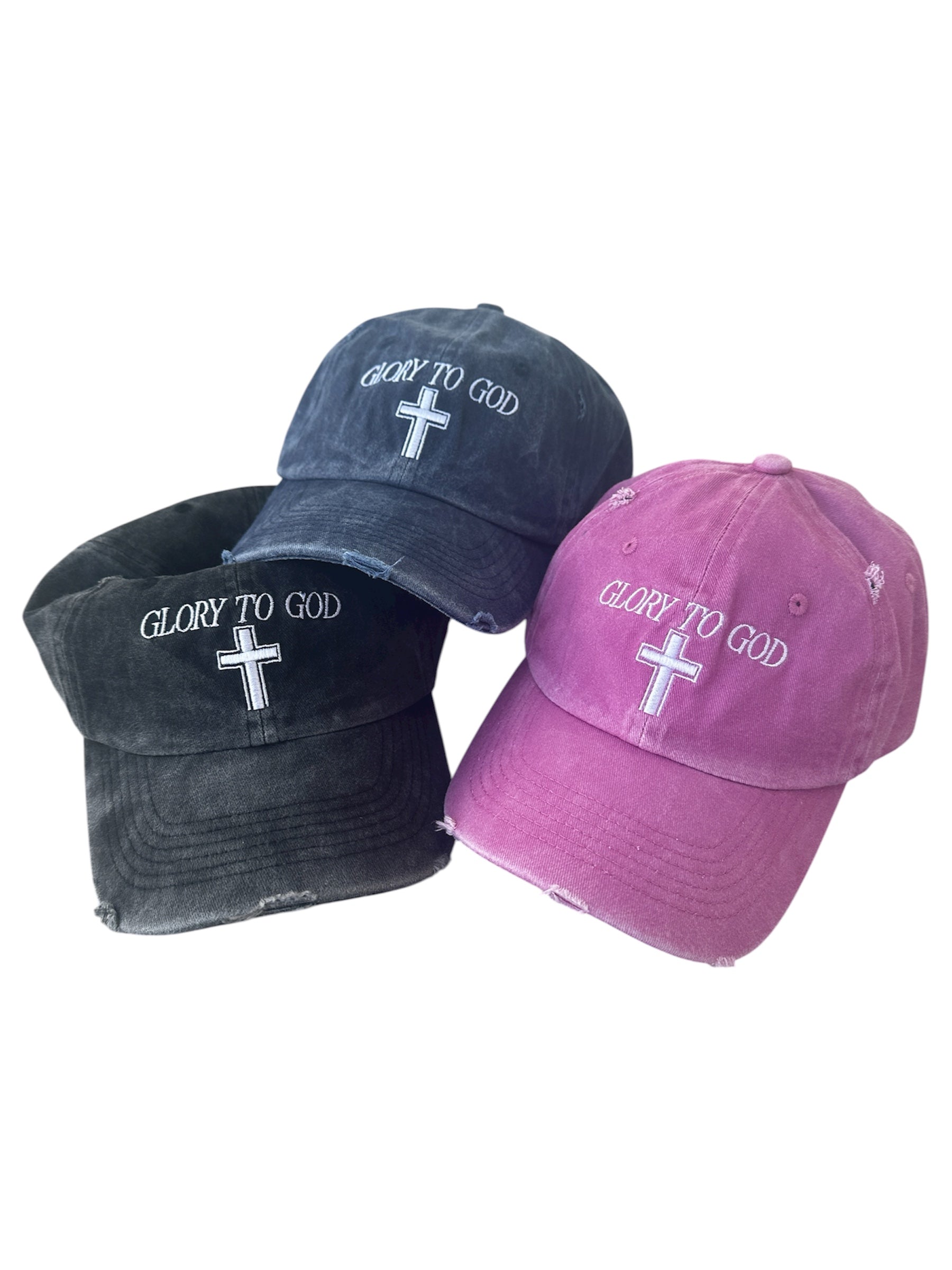 Available in washed black, vintage navy, and vibrant pink, these hats are the perfect blend of faith and fashion—ideal for casual outings, church events, or everyday wear.
